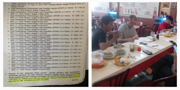 Surat tersebut berisi permohonan agar pihak kepolisian memberikan kepastian hukum atas laporan polisi dengan nomor: STTLP/528/YAN.2.5/III/2019/SPKT RESTABES MEDAN yang dibuat pada bulan Maret 2019 lalu.