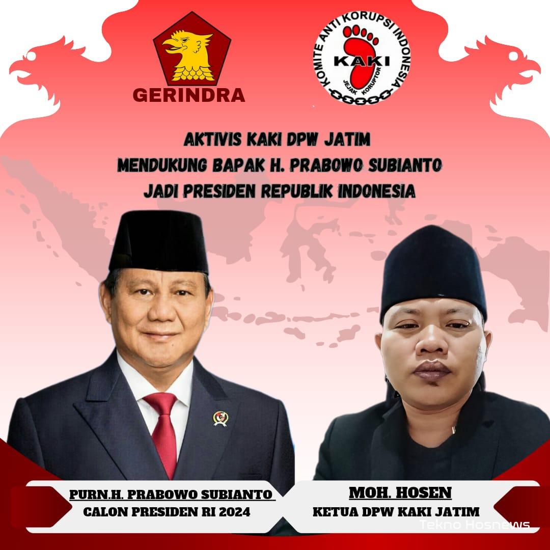 Moh Hosen Ketua Aktivis Komite Anti Korupsi Indonesia (KAKI) DPW JATIM di Pilpres 2024 mendukung Capres Prabowo Subianto jadi presiden Republik Indonesia berdasarkan keahlian menjadi pemimpin, pengetahuan dan pengalaman sebagai abdi negara," Kamis 17 Agustus 2023.