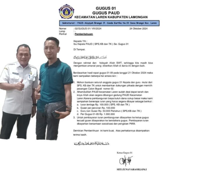 LAMONGAN, hosnews.id – Aktivis dari Komite Anti Korupsi Indonesia (KAKI) Perwakilan Jawa Timur mengecam keras dugaan intimidasi yang terjadi di dunia pendidikan Kabupaten Lamongan menjelang Pilkada. Tindakan yang melibatkan Kepala dan Guru Pendidikan Anak Usia Dini (PAUD) di Kecamatan Laren ini dinilai sebagai praktik yang mencoreng integritas pendidikan dan dapat dikategorikan sebagai bentuk korupsi politik.