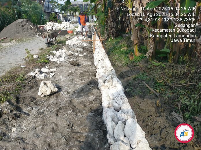 LAMONGAN, hosnews.id – 11 Agustus 2025 – Proyek pembangunan Tembok Penahan Tanah (TPT) di Dusun Mergayu, Desa Gedangan, Kecamatan Sukodadi, Kabupaten Lamongan, menimbulkan kejanggalan yang patut dipertanyakan. Proyek fisik yang menggunakan dana publik ini tidak hanya dikerjakan tanpa papan informasi proyek, tetapi juga tidak diketahui oleh Sekretaris Desa (Sekdes), sementara Kepala Desa tidak ada di tempat saat dikonfirmasi.
