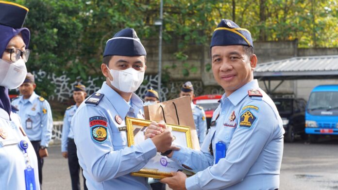 Cilegon INFO_PAS – Lembaga Pemasyarakatan (Lapas) Kelas IIA Cilegon Kantor Kemenkumham Banten memberikan penghargaan kepada 3 orang pegawai teladan dan berprestasi pada Senin (13/06) pagi. Penyerahan penghargaan dipimpin langsung oleh Kalapas Sudirman Jaya dan dilakukan pada saat pelaksanaan apel pagi.