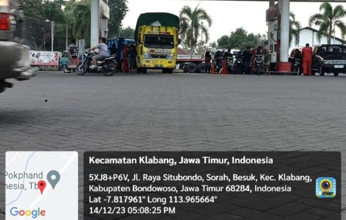 Fenomena seperti ini, terjadi di SPBU Pertamina 54.682.07 Klabang, Bondowoso, Jatim, pada Kamis, (14/12/2023).