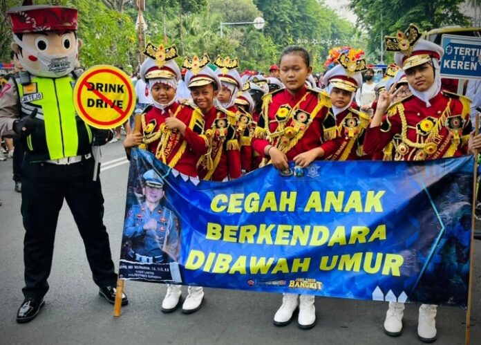 SURABAYA – Dalam rangkaian HUT Lantas yang ke 67, Sat Lantas Polrestabes Surabaya gelar Road Show Kamseltibcarlantas Surabaya tertib berlalu lintas, yang dilaksanakan pada Minggu (11/9/2022) pagi, pada saat masyarakat melaksanakan Car free day di Taman Bungkul Surabaya.