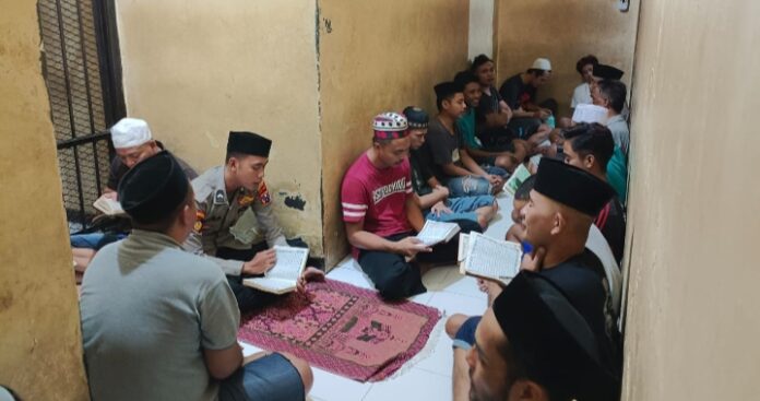 Kapolres Sampang AKBP Siswantoro S.IK, MH melalui Kasat Tahti Polres Sampang Aiptu Johanes Kila Rewo SH menyampaikan bahwa dalam meningkatkan keimanan dan ketakwaan para tahanan yang beragama islam, Sat. Tahti Polres Sampang rutin melaksanakan pembinaan rohani dan mental setiap hari.