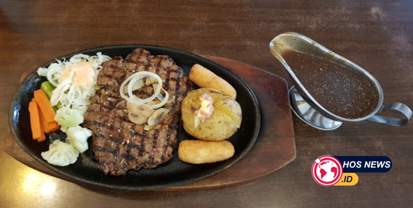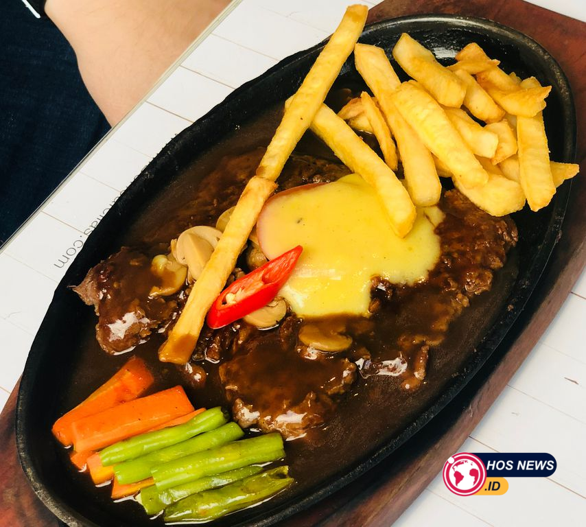 Kemudian disajikan menggunakan saus spesial yang lembut beserta sayuran khas steak seperti kacang panjang, wortel, kentang dan tomat. Sajian menu makanan yang sehat dan mengenyangkan.