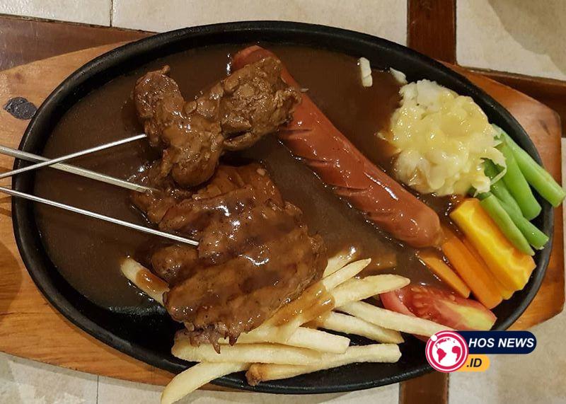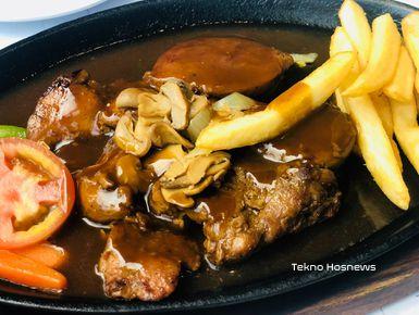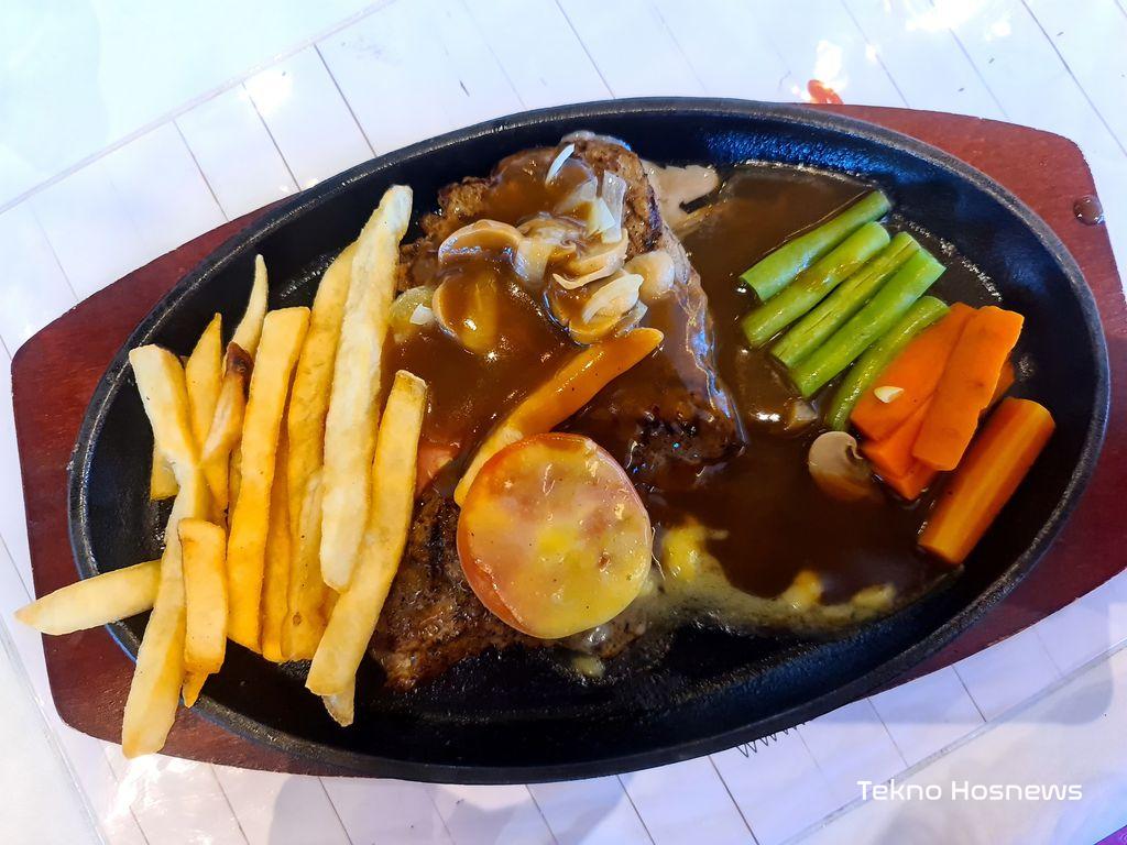Kemudian disajikan menggunakan saus spesial yang lembut beserta sayuran khas steak seperti kacang panjang, wortel, kentang dan tomat. Sajian menu makanan yang sehat dan mengenyangkan.