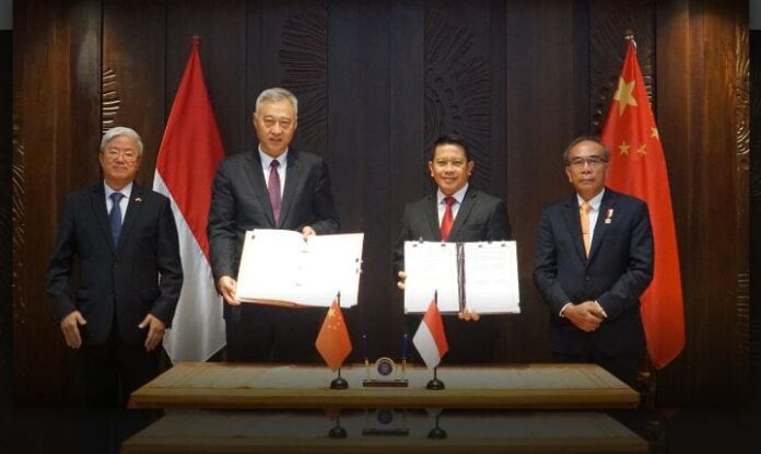 巴厘島-印度尼西亞共和國國家網路和加密局(BSSN)與中華人民共和國國家互聯網資訊辦公室(CAC)在滾石購物中心簽署了一份發展網路安全和技術能力的合作協議週日,巴厘島酒店(26/ 5/2024)。