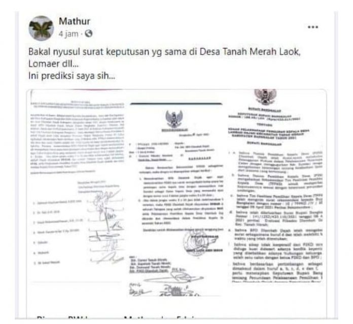“Bakal nyusul surat keputusan yg sama di Desa Tanah Merah Laok, Lomaer dll…