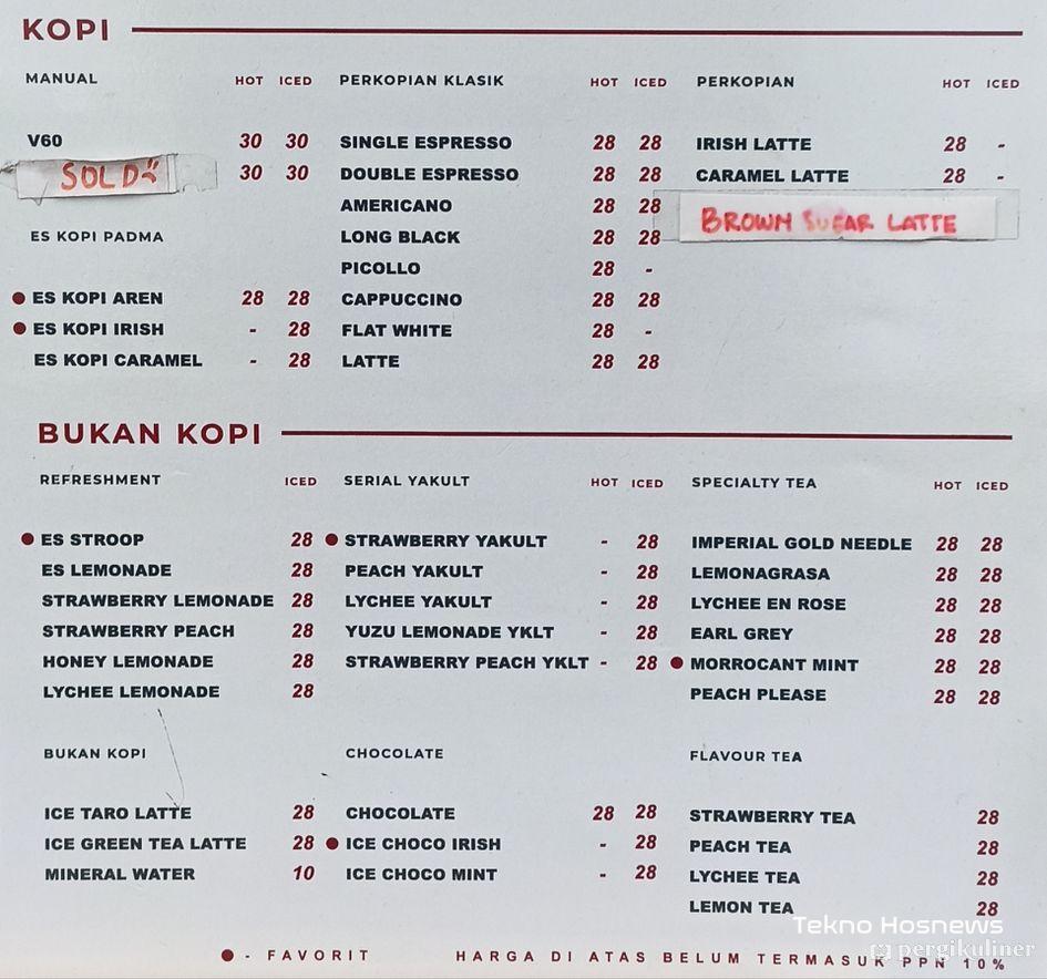 - Flat White: Rp 28.000