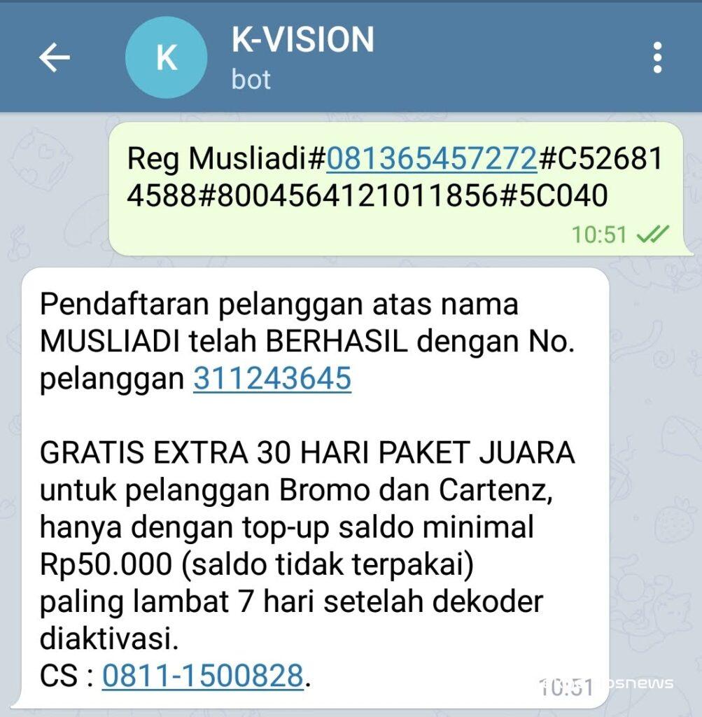 5. Cara Aktivasi K Vision Gratis Selamanya Melalui Telegram