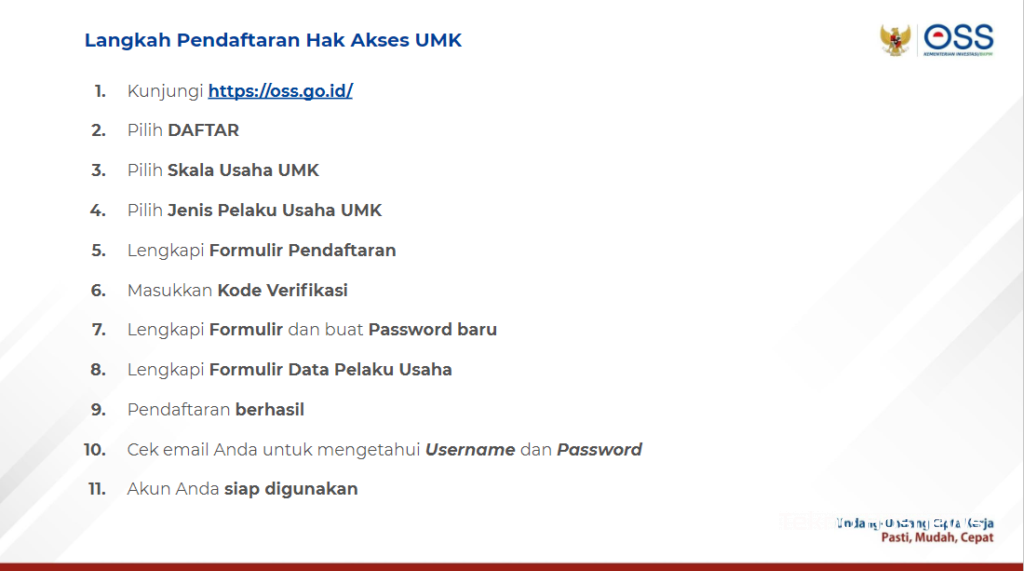Setelah terdaftar di OSS melalui https //oss.go.id cara daftar umkm via online, barulah Anda bisa bebas mengembangkan usaha Anda. Mau tahu cara untuk mendaftarkan usaha Anda?