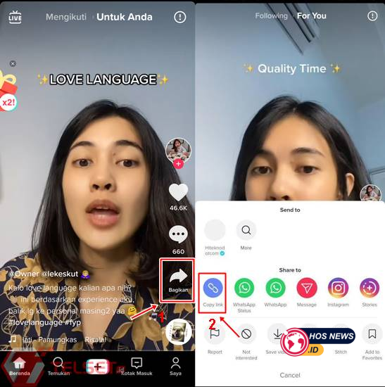 2. Buka aplikasi TikTok, temukan konten foto yang Anda inginkan, lalu salin tautannya.