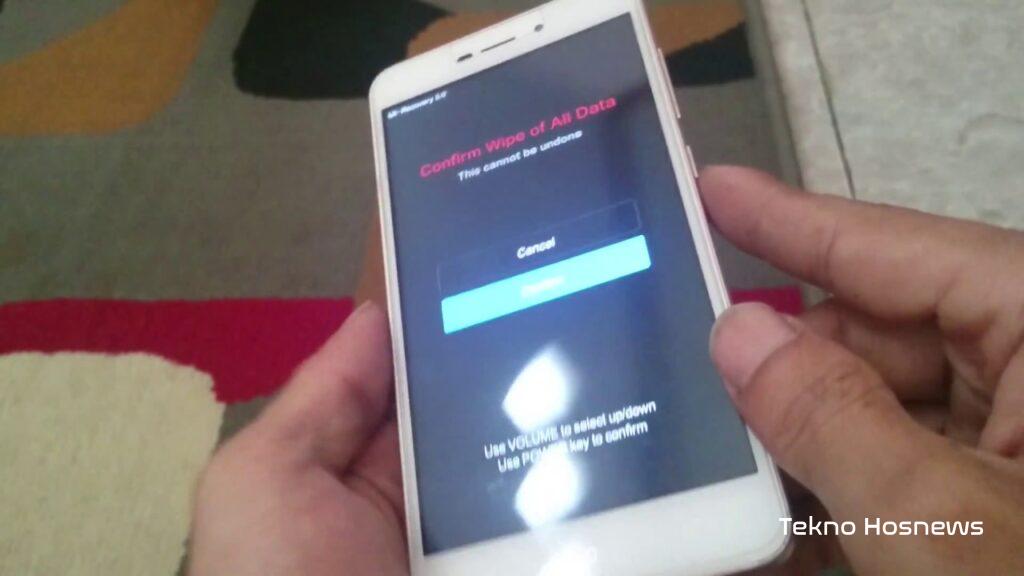 - Kemudian pilih wipe untuk konfirmasi proses reset