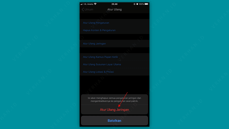 2. Konfirmasi Atur Ulang Jaringan, iPhone otomatis akan merestart.