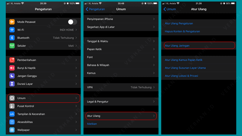 Ada trik lain untuk restart , yaitu dengan mengatur jaringan pada iPhone. Dengan mengatur jaringan ulang, maka iPhone kamu akan meminta restart ulang. Berikut adalah tutorialnya: