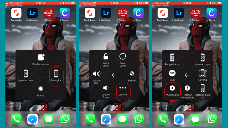 Jika tombol home, volume atau power rusak, ada cara lain yaitu dengan menggunakan AssitiveTouch.