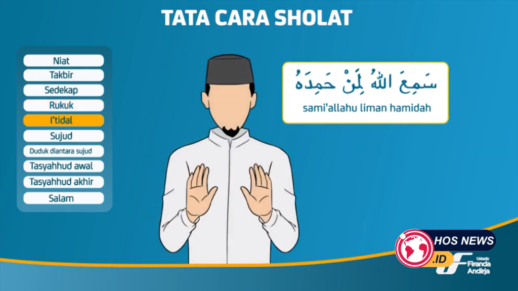 Bacaan: سَمِعَ اللّٰهُ لِمَنْ حَمِدَهُ “Sami‘allaahu liman hamidah.” (Allah mendengar orang yang memuji-Nya)
