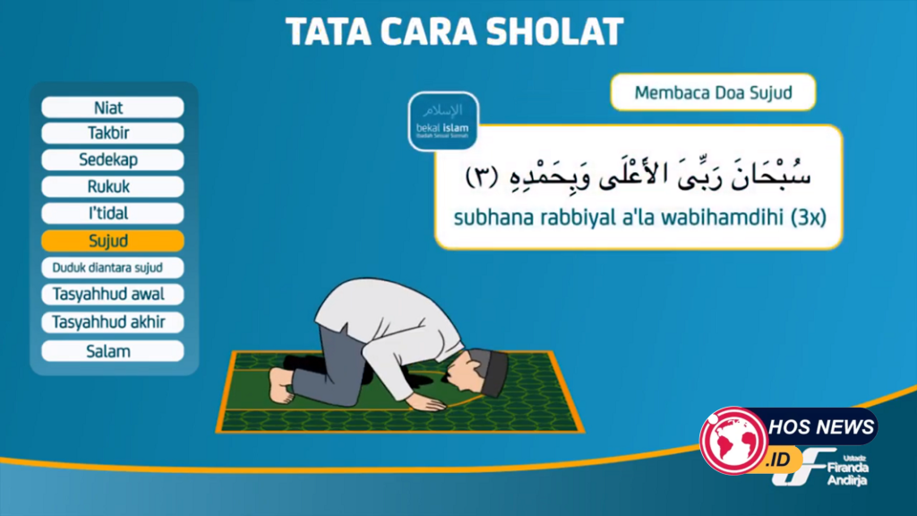 Bacaan: سُبْحَانَ رَبِّيَ الْأَعْلَى وَبِحَمْدِهِ “Subhaana rabbiyal a‘laa wa bihamdih.” (Dibaca 3x) (Maha Suci Tuhanku yang Maha Tinggi dan dengan segala pujian-Nya)