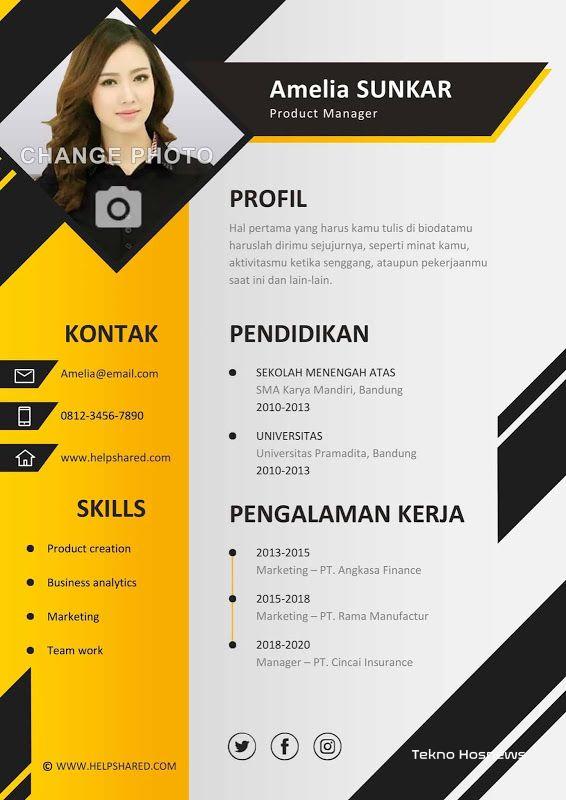 Jenis CV kreatif ini sangat cocok bagi kita yang ingin melamar pekerjaan di bidang kreatif seperti desain grafis, editor majalah, fotografer, ilustrator, atau sejenisnya.