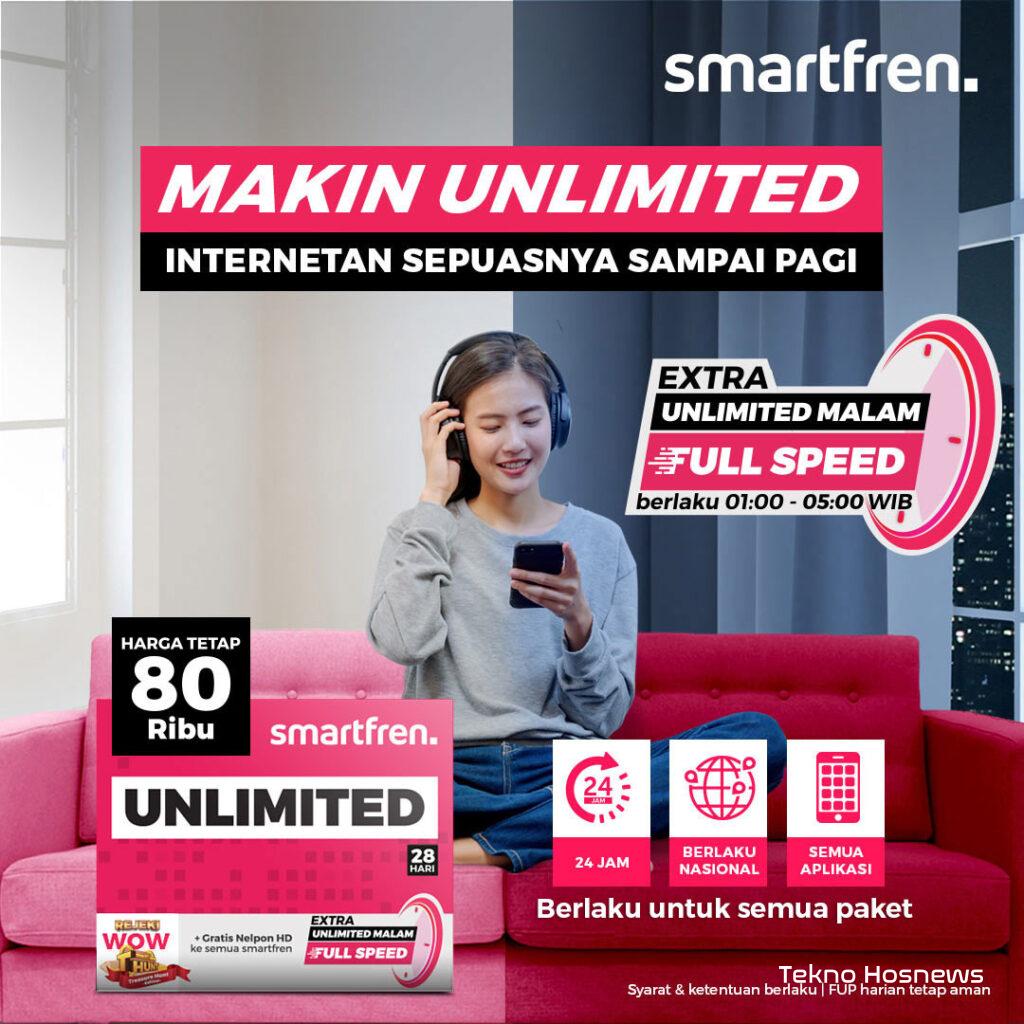 • Internet unlimited akan mendapatkan full speed pada jam 1 malam sampai jam 5 pagi (kecuali paket unlimited 1 hari).