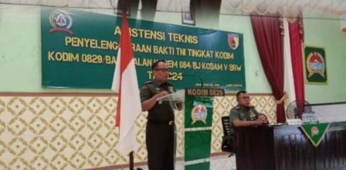 BANGKALAN- Dandim 0829/Bangkalan Letkol inf Nanang Fahrur Rozi.S.Pd. mendampingi Tim Asnis Pusterad memberikan arahan dan motivasi untuk menyamakan persepsi tentang pelaksanaan kegiatan Bakti TNI oleh Kodim Bangkalan bertempat di Gedung Manunggal Kodim 0829/Bangkalan jl. Jl. Letnan Abdullah no 4. Kelurahan Keraton, Kecamatan Bangkalan, Kabupaten Bangkalan, Kamis (30/05/2024).