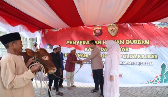 Penyerahan hewan qurban ini diberikan secara simbolis oleh Kapolda Kalbar Irjen Pol Suryanbodo Asmoro kepada Ketua Pelaksana Qurban.