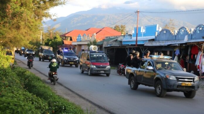 “Sebelum kita melaksanakan pengamanan pada titik yang sudah ditentukan kita akan melaksanakan Show Of Force, apabila nanti ada massa kita harus menghimbau dengan humanis agar tidak melakukan kegiatan yang tidak baik, kita harus kompak dalam menjaga kamtibmas diwilayah kabupaten Jayawijaya,” ucapnya.