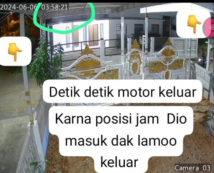 Lanjut Agus, detik -detik terdapat sebuah motor masuk dikawasan tersebut terekam pada pukul 03:00 WIb, hingga detik -detik sebuah motor yang berboncengan itu keluar pada pukul 03:30 WIB.