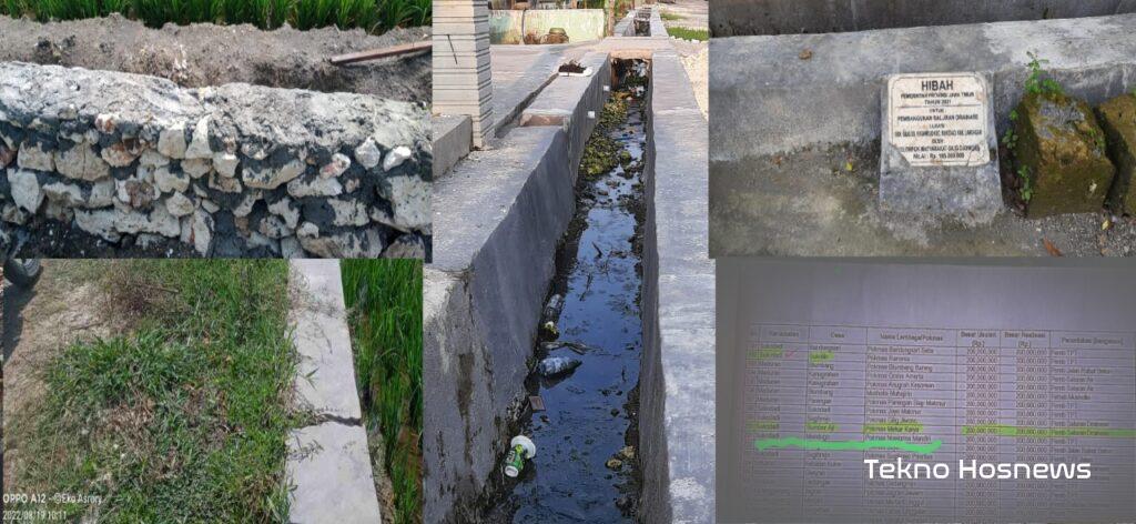 Seperti halnya yang Diduga terjadi dalam proses pembangunan Tembok Penahan Tanah (TPT), Saluran Air maupun Pembangunan jalan Rabat Beton yang bersumber dari Jasmas provinsi Jawa Timur tahun 2021,