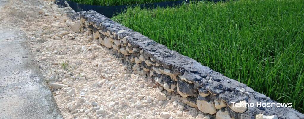 Alasannya material batu yang digunakan diduga menggunakan batu putih berkualitas buruk, bahkan dalam pemasangan batu yang terkesan asal-asalan, serta campuran adukan materialnya tidak memperhatikan aturan dan petunjuk teknis yang ada.