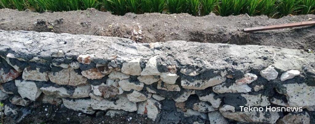 Alasannya material batu yang digunakan diduga menggunakan batu putih berkualitas buruk, bahkan dalam pemasangan batu yang terkesan asal-asalan, serta campuran adukan materialnya tidak memperhatikan aturan dan petunjuk teknis yang ada.