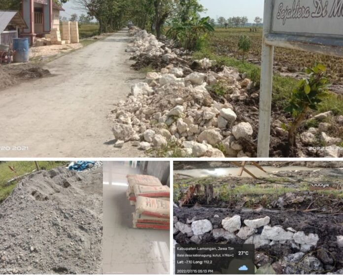 LAMONGAN, HN.ID- Bantuan yang bersumber dari alokasi pendapatan belanja daerah (APBD) kabupaten Lamongan Jawa Timur, untuk program jaminan aspirasi masyarakat (Jasmas) melalui para Anggota Dewan (DPRD) Lamongan, yang diduga sarat dengan kepentingan ataupun manipulasi, seperti bantuan tembok penahan tanah (TPT) di desa Kebonagung Kecamatan Babat diduga tidak sesuai dengan RAB.