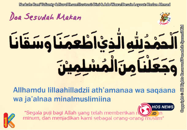 Artinya: “Segala puji bagi Allah yang telah memberi kami makan dan minum serta menjadikan kami termasuk dari kaum Muslimin.”