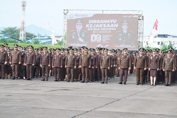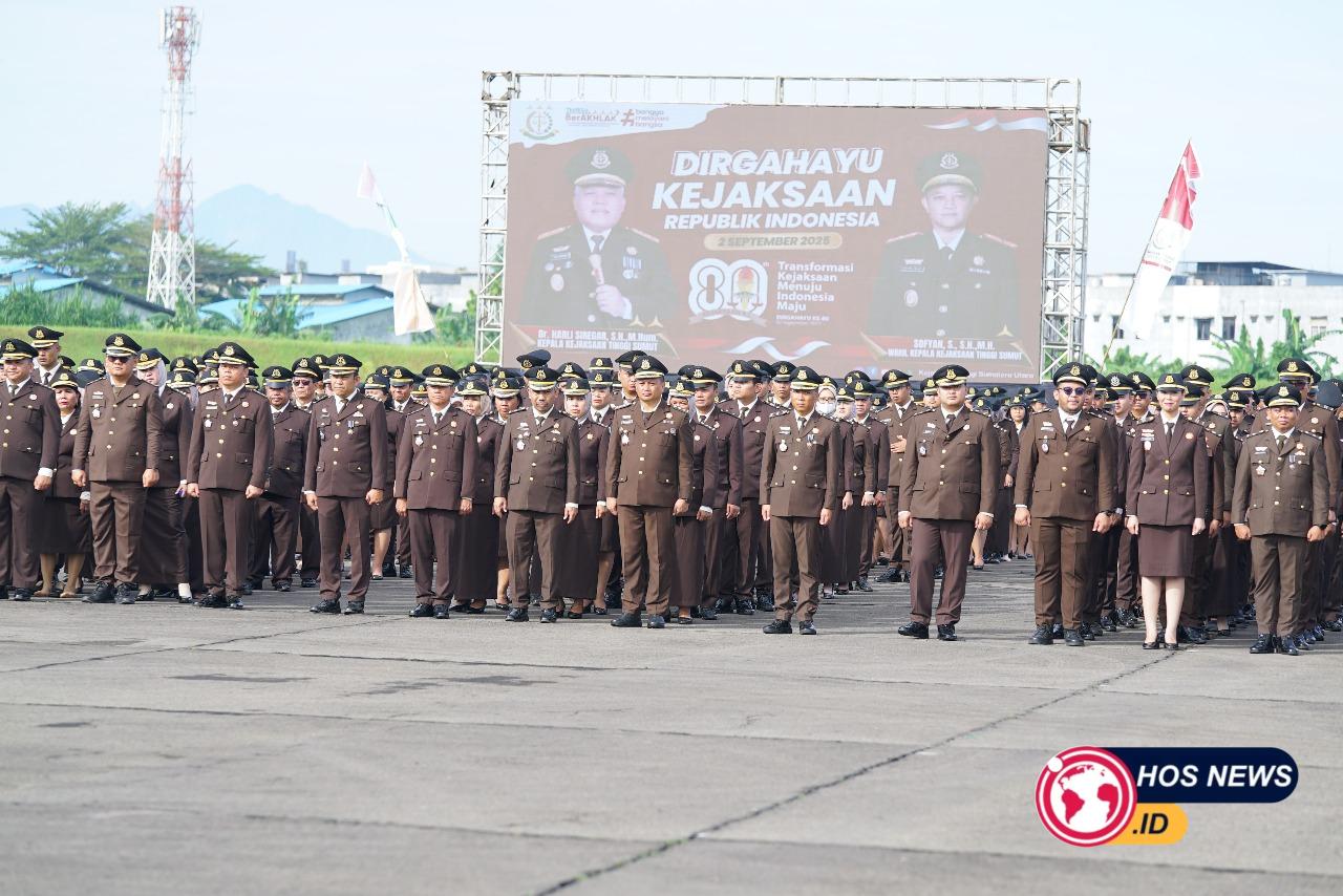 Medan, Hosnews.id- Kepala Kejaksaan Tinggi Sumatera Utara Dr.Harli Siregar, SH.,M.Hum bertindak sebagai inspektur upacara peringatan hari lahir (HARLAH) ke-80 Kejaksaan Republik Indonesia dengan tema yang berlangsung di lapangan TNI Angkatan Udara (lanud) Soewondo, Kecamatan Polonia Medan.