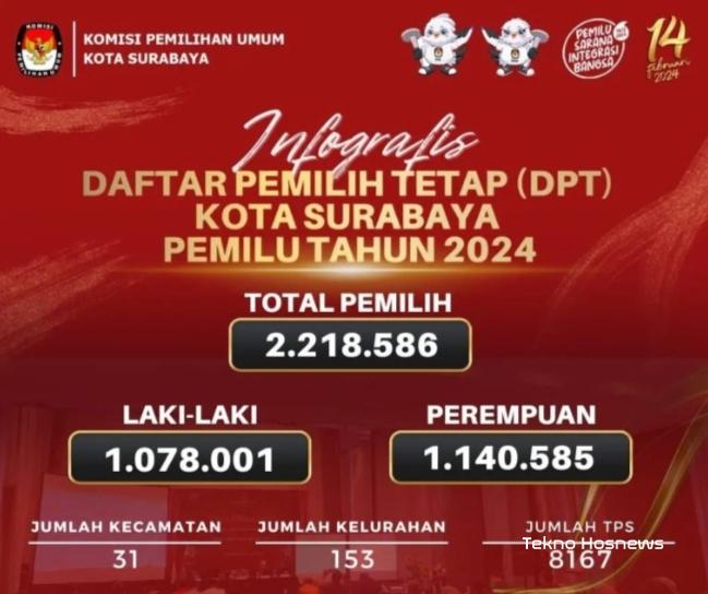 Dikonfirmasi Moh Hosen Aktivis Komite Anti Korupsi Indonesia (KAKI) Soal Rekapitulasi DPT PEMILU 2024 Surabaya di 31 Kecamatan, Ketua KPUD Surabaya Nur Syamsi Menyampaikan, 2.218.586 Daftar Pemilih Tetap (DPT) dengan rincian Laki-Laki : 1.078.001 dan Perempuan: 1.140.585.