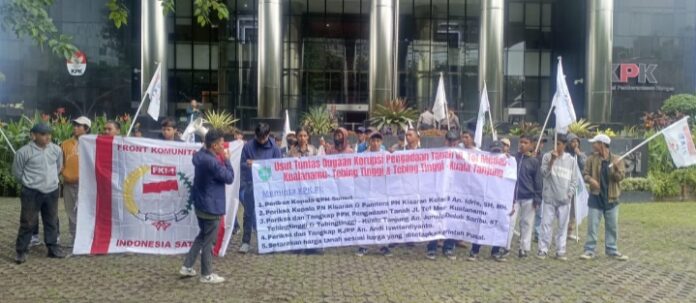 JAKARTA,HN- Ditengah guyuran hujan yang melanda kota Jakarta seharian, namun tidak menyurutkan langkah ormas Front Komunitas Indonesia Satu (FKI-1) Sumatera Utara menuju Gedung Merah Putih KPK RI untuk menyuarakan penderitaan masyarakat yang tanahnya terkena lintasan jalan Tol Ruas Kuala Tanjung-Indrapura dan Ruas Tol Tebing Tinggi-Indrapura, Jumat (19/1/2023).