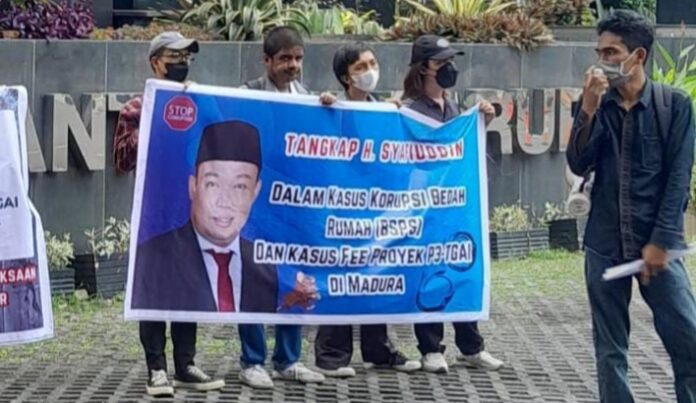 Dalam aksi tersebut, Mustain Musleh meminta agar KPK segera menetapkan tersangka H. Syafiuddin dalam tindak pidana korupsi program Bedah Rumah Bantuan Stimulan Perumahan Swadaya (BSPS) di Kabupaten Bangkalan. Menurut Mustain, program BSPS di Bangkalan banyak yang dikerjakan asal-asalan.