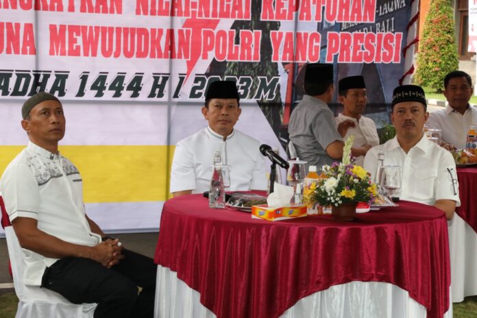 Sesuai dengan tema pada acara Kurban Polri Presisi pada tahun ini Idul Adha Meningkatkan Nilai-Nilai Kepatuhan dan Moralitas Guna Mewujudkan Polri Yang Presisi juga bertepatan dengan rangkaian Hari Bhayangkara Ke-77 Tahun 2023.