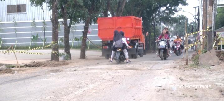 “ini aja saya Ama temen-temen punya ini siatif Kita taruhin puing atau batu kecil sisa2 dari proyek supaya sama permukaan annya.dan saya berharap di pasang lampu lalu lintas lah,biar penguna jalan tahu kalau ada pengerjaan jalan.ujarnya.