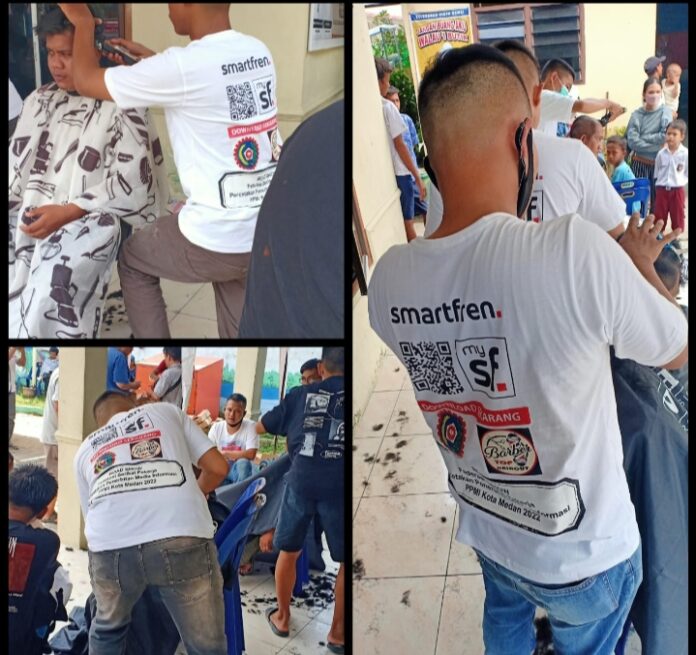 Medan – Masyarakat antusias mengikuti Road Show Pangkas Gratis dan Penjualan Sembako Murah yang digelar Organisasi Serikat Pekerja Percetakan Penerbit Dan Media Informasi (PPMI) di Kelurahan Cinta Damai Kecamatan Medan Helvetia Kamis (21/7/2022).