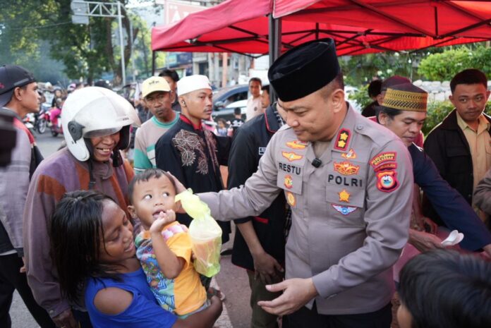 Dipimpin langsung oleh Kapolres Pelabuhan Makassar, AKBP Restu Wijayanto, kegiatan ini menjadi bagian dari program kepedulian sosial Polres Pelabuhan Makassar selama bulan Ramadan. Dalam kegiatan ini, sebanyak 350 paket nasi dos dan es buah dibagikan kepada masyarakat yang melintas, termasuk pengendara, pejalan kaki, hingga warga sekitar yang membutuhkan.