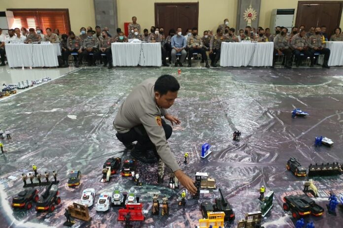 HOSNEWS.ID – Menjelang pengamanan side event sherpa track presidensi G20, Polda Bali menggelar latihan Tactical Floor Game (TFG) di gedung Perkasa Raga Garwita (PRG) Polda Bali, Sabtu (20/8/2022).