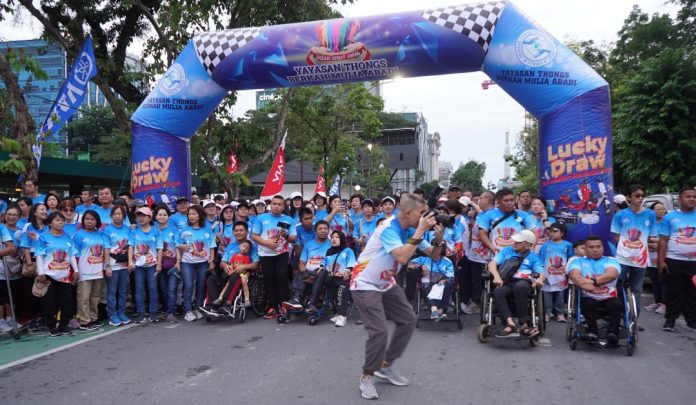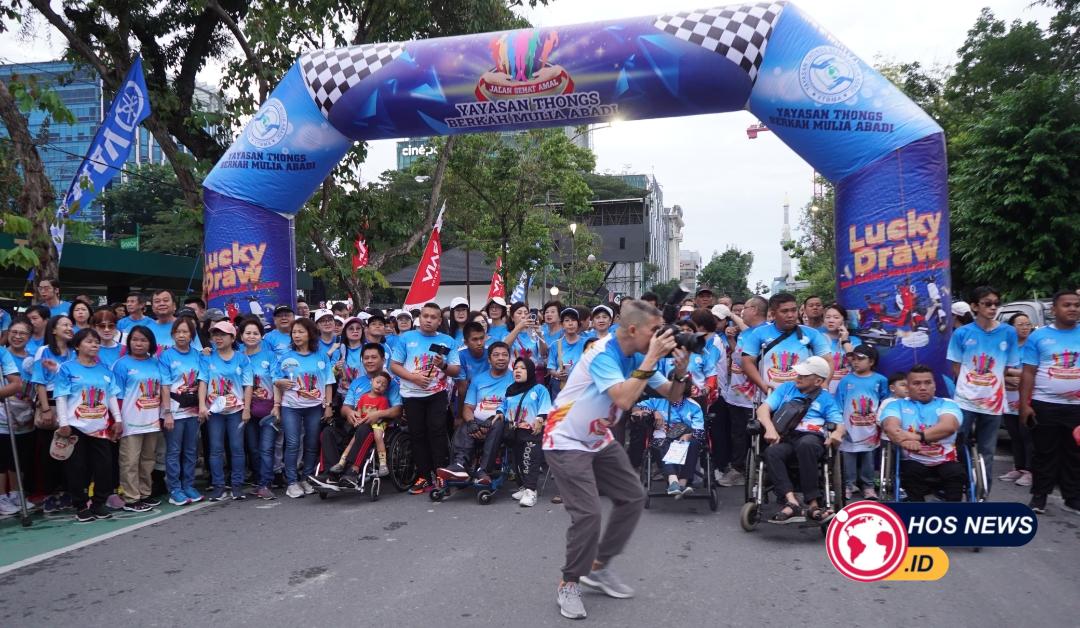 Usai jalan santai, acara dilanjutkan dengan penyerahan santunan berupa alat bantu kepada kaum disabilitas. Kajati Sumut menyampaikan apresiasi kepada Yayasan Thongs yang terus menunjukkan kepedulian sosial, khususnya kepada penyandang disabilitas.