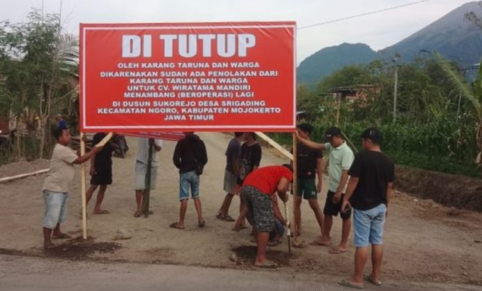 Dampak Tambang meresahkan, sejumlah Warga dan Anggota Karang Taruna Desa Srigading Kecamatan Ngoro, Kabupaten Mojokerto pada siang hari tanggal 04 Oktober 2025, sekira ada sekitar 75 orang warga berkumpul menutup jalan menuju tambang yang di claim milik CV Wiratama Mandiri.