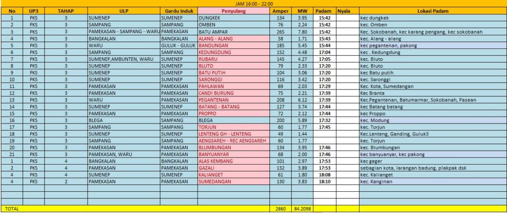 Mulai dari bangkalan sampai sumenep juga terdampak padam bergilir. Dan masih proses perbaikan untuk pemulihan kembali.