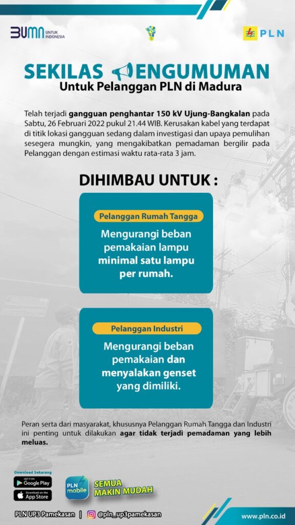 PLN Bangkalan harus tanggap dan sigap dalam perbaikan padam listrik mengingat listrik sangat dibutuhkan khalayak masyarakat dalam kebutuhan sehari hari.