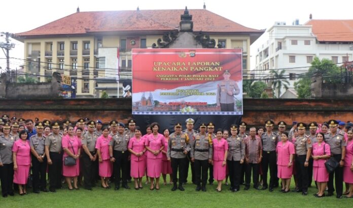 BALI INDONESIA – Kepala Kepolisian Daerah Bali, Irjen. Pol. Drs. Putu Jayan Danu Putra, S.H., M.Si., memimpin upacara kenaikan pangkat Personel Polda Bali dan PNS Polri. Upacara kenaikan pangkat tersebut digelar di halaman depan Mapolda Bali pada, Senin (2/1/2023).