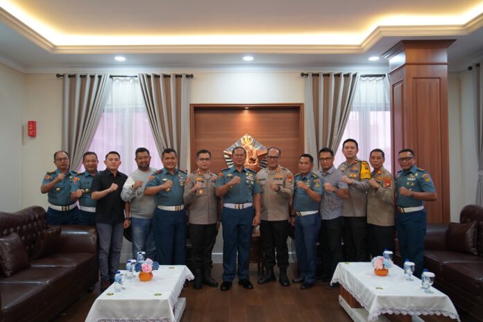 JAJARTA,- Kapolres Metro Jakarta Utara Kombes Pol Gidion Arif Setyawan menyambangi markas Pusat Polisi Militer Angkatan Laut (Puspomal) di Jl. Boulevard Bukit Gading Raya, Kelapa Gading, Rabu (5/6).