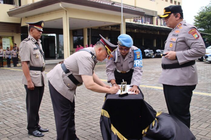 Jabatan Kabag SDM di serah terimakan dari KOMPOL Firdaus Prapanca, S.H., kepada KOMPOL Supriyadi, S.H., M.H., Kabagren di serah terimakan dari KOMPOL Supriyadi, S.H., M.H., kepada AKP Suprobo, S.H., Kasatresnarkoba di serah terimakan dari AKP Anggoro Winardi, S.H., M.H., kepada AKP Sigit Santoso, S.I.K., M.Si., CPHR., Jabatan Kasatintelkam dari AKP Sasanti Raharjo, S.S., M.M., kepada AKP Diondi Asido Manik, S.Trk.