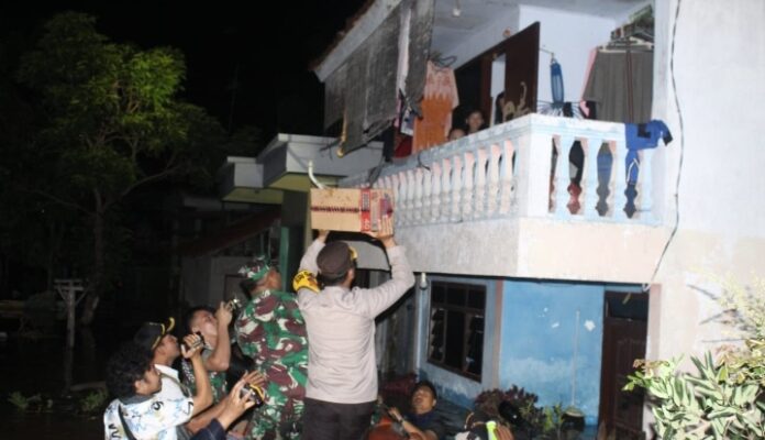 Dengan menaiki perahu karet milik Polres Sampang dan BPBD Kabupaten Sampang, rombongan Pangdam V Brawijaya menerobos banjir di Jl. Aji Gunung sambil membagikan ratusan nasi siap saji dan puluhan dos mie instan kepada warga yang berada dirumahnya yang masih tergenang air setinggi dada orang dewasa.